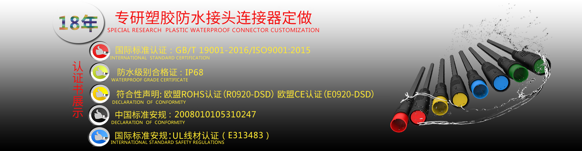 成立于2002年,坐落于設計之都中國廣東省深圳市。公司致力于LED防水連接器、衛浴防水連接器、燈具防水連接器、太陽能防水連接器、地暖防水線、路燈防水線、電動車防水線、防水連接線材、工業防水插頭等各類連接線開發、設計、生產、銷售的專業廠家,產品廣泛應用于工業、安防、電腦、通訊、家電、機電、汽車、LED等各種電子產品中,主要包括:生產及加工2.54、2.0 、2510、3.96、5.08、SAN/SCN、XH 、PH 等各系列連接線,幾百多種規格的電子接插線、LED、防水線,并可按客戶要求開發、設計、制造。